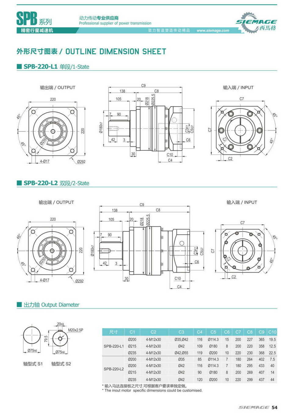 ■ 7種可選尺寸:SPB42mm~SPB220mm